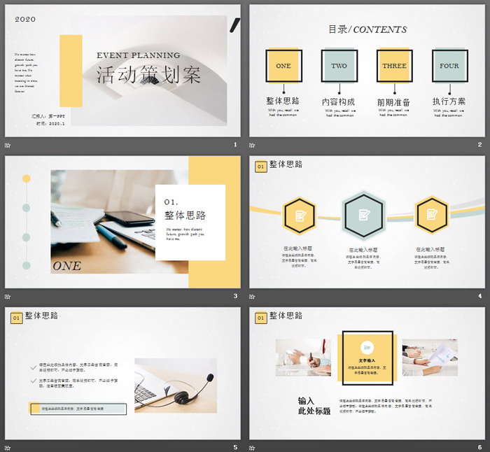 这是一套淡雅彩色小清新风格的,活动策划PPT模板。共25张;