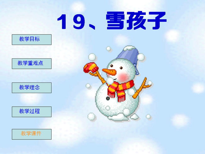 关键词:动态PPT课件下载,新课标语文课件,人教版小学语文一年级上册,雪孩子PPT课件下载;
