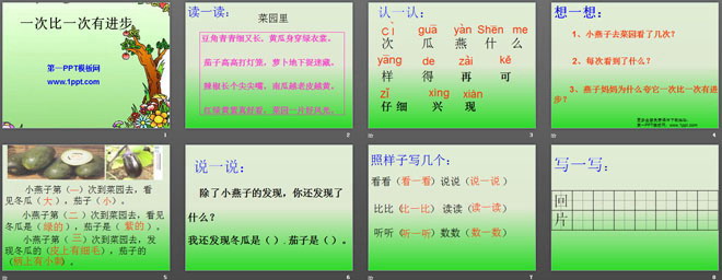 关键词:新课标语文课件,人教版小学语文一年级上册,一次比一次有进步PPT课件下载;