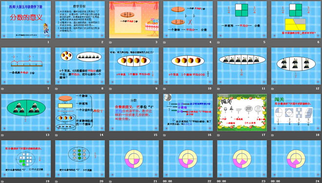 关键词:分数课件PPT,分数的意义课件PPT,西师大版五年级下册数学PPT课件下载,五年级数学幻灯片课件下载,分数PPT课件下载,分数的意义PPT课件下载,.PPT格式