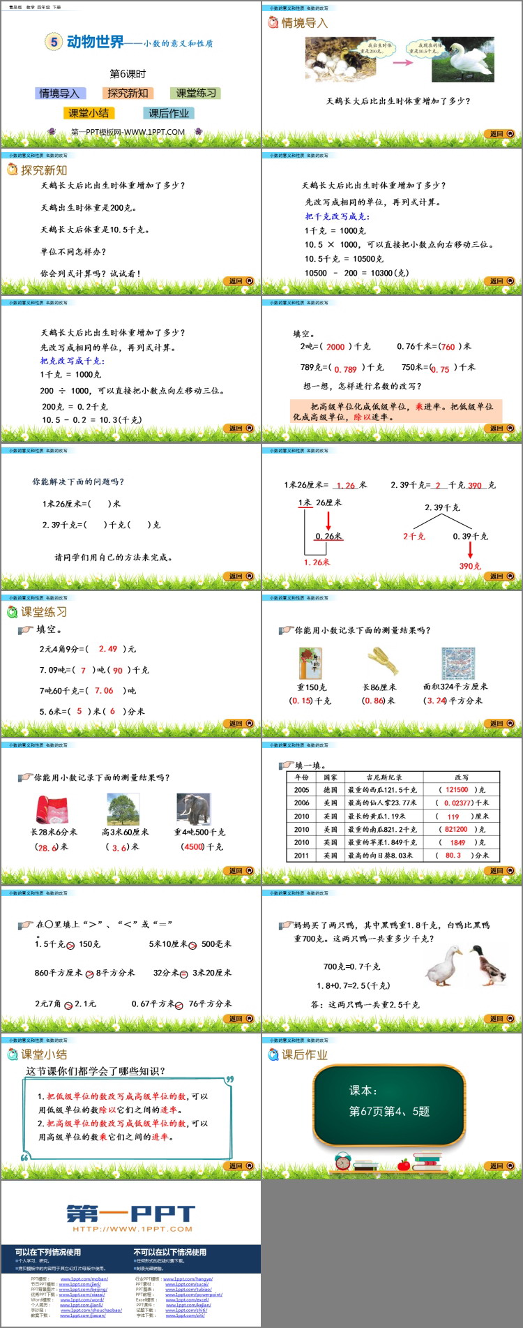 青岛版四年级数学下册《动物世界》PPT教学课件(第6课时),共17页。