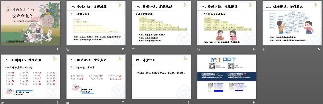 本课件针对表内乘法单元的知识点进行了全面的整理与复习,是很好的教学课件。