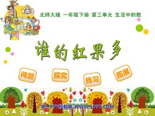 关键词:谁的红果多课件PPT,北师大版一年级下册数学PPT课件下载,一年级数学幻灯片课件下载,谁的红果多PPT课件下载,.PPT格式