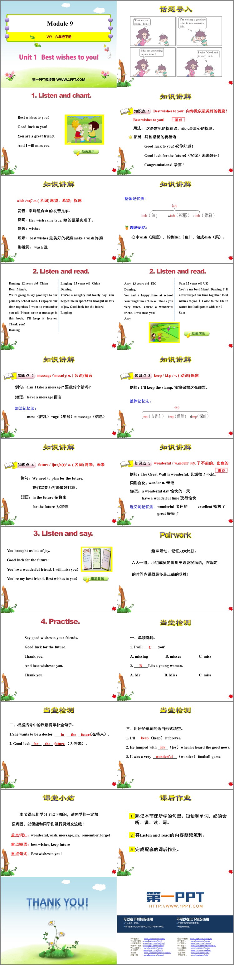 外研版六年级英语下册《Best Wishes to you》PPT课件下载,共22页。