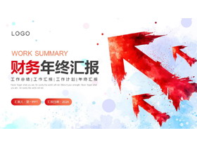 这是一套红色箭头背景财务年终汇报PPT模板,共26页;