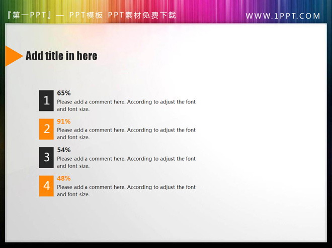 用带黄色黑色方块的数字作为PPT目录序号的背景色。右面是PPT文本框内容,用来说明目录的标题和概括内容;本张PPT素材适合制作科技类PowerPoint目录;